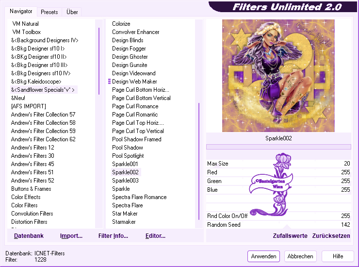 Sparkle 002 mit dieser Einstellung