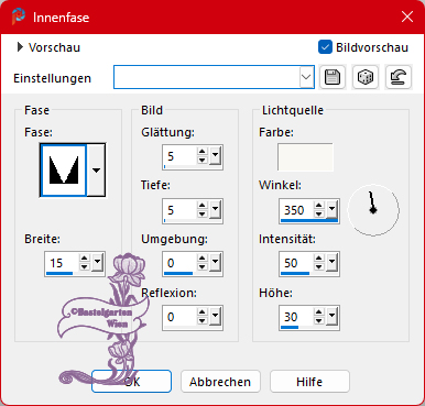 Toleranz 15 und Randschärfe 0