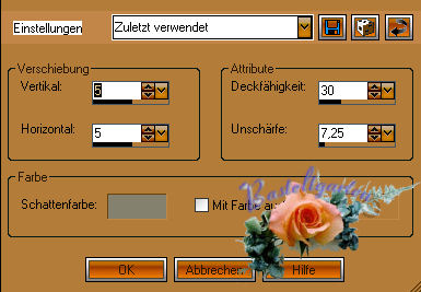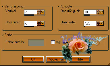 3D Effekte - Schlagschatten mit diesen Werten.